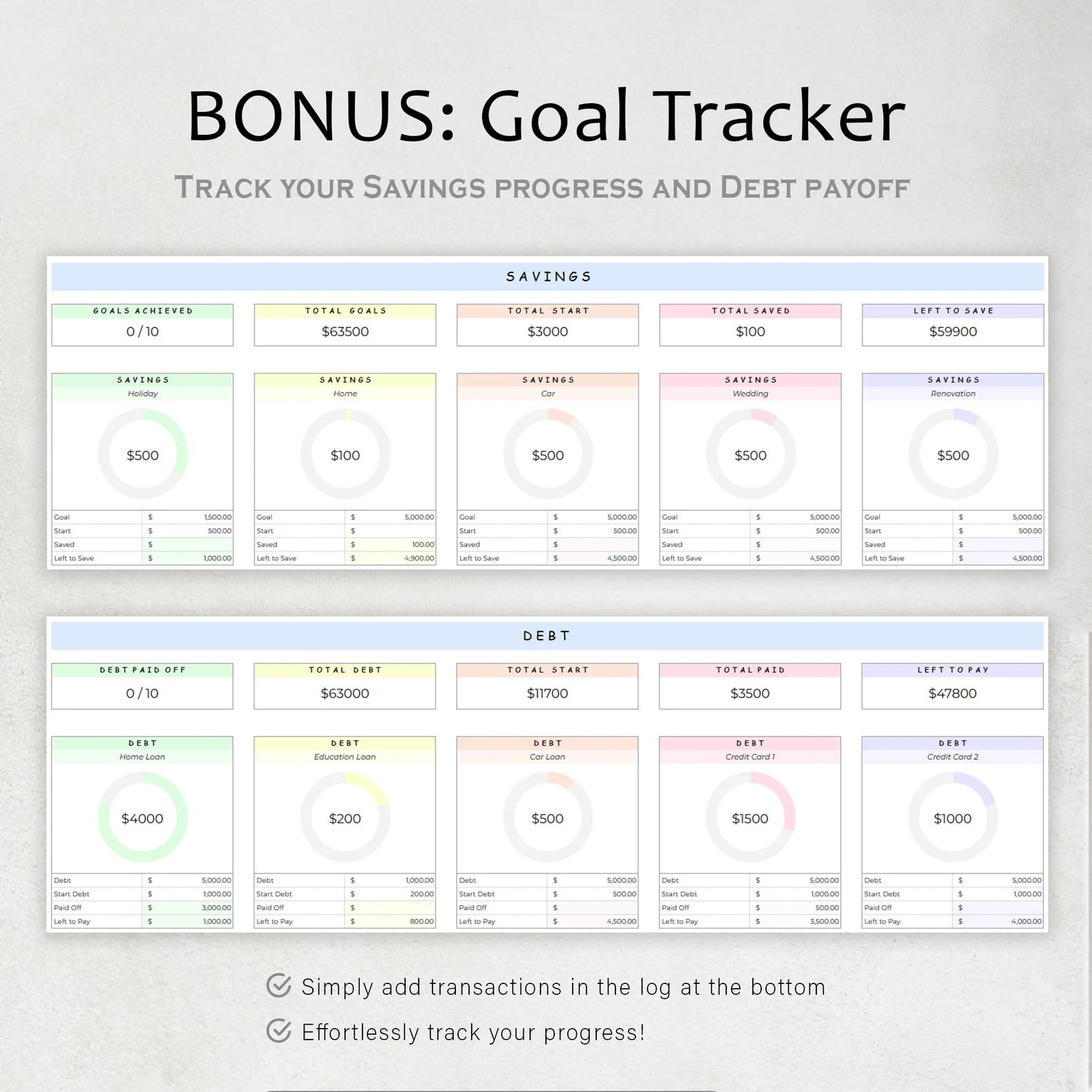 ✓ Convenient checkboxes to mark off paid bills, debt and savings